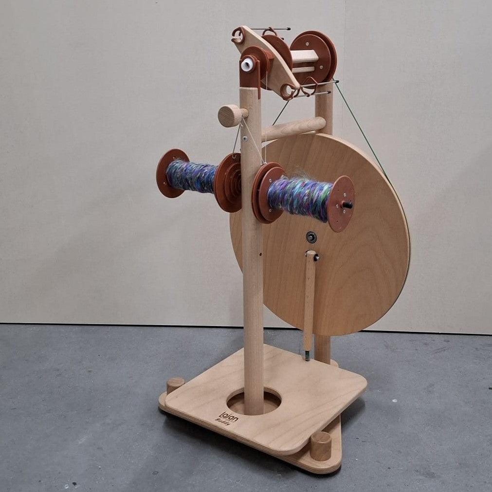 Le Budget Buddy offre la même qualité et expérience de filage que les autres rouets Lojan, mais à prix moidre, frace à quelques ajustements. Il vient avec 3 bobines au lieu de quatre, et a un cantre intégré au poteau avant.